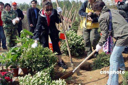 四月九日,日本青年同鄭州青年志愿者在中國河南黃河岸邊共同植樹。當日,以日本日中友好協(xié)會副會長、靜岡縣日中友好協(xié)會會長鈴木重郎為團長的日本靜岡縣綠化合作訪華團一行三十九人,與河南鄭州惠濟區(qū)二百余名青年志愿者在黃河岸邊邙嶺共植新綠。中新社發(fā) 李志全 攝