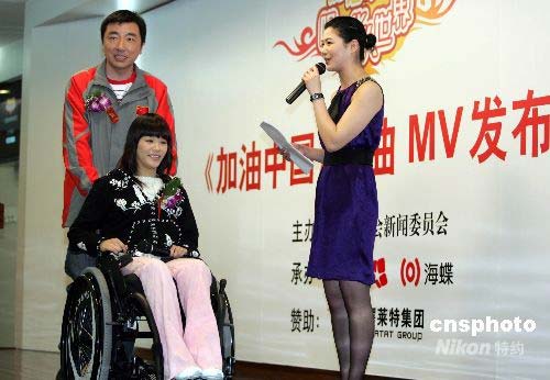 4月11日,奧運冠軍楊凌推著桑蘭登臺暢談錄制《加油中國》歌曲的心得。當日,體育門戶網站華奧星空與華人唱片公司海蝶在北京發布“加油中國—唱響華人世界”系列活動主題歌《加油中國》。該歌曲由高敏、吉新鵬、雷聲、桑蘭、王海濱、王麗萍、刑傲偉、楊凌等八位體育明星共同錄制演唱。作者: 楊可佳