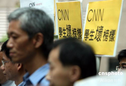 香港教育團體集會抗議CNN電視主播辱華言論。中新社發 武仲林 攝