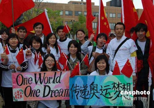 4月26日清晨6點,作為北京奧運會火炬傳遞長野段終點的若里公園聚集了大批從日本各地連夜趕來的中國留學生。中新社發 關妍 攝