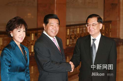4月28日,中共中央政治局常委、全國政協(xié)主席賈慶林在北京人民大會堂會見國民黨榮譽(yù)主席連戰(zhàn)。廖文靜 攝