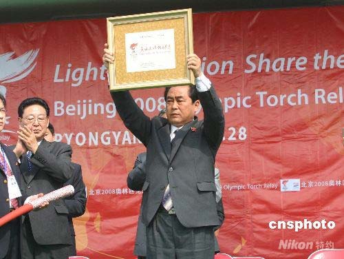 組圖:北京奧運圣火在朝鮮平壤傳遞(11)