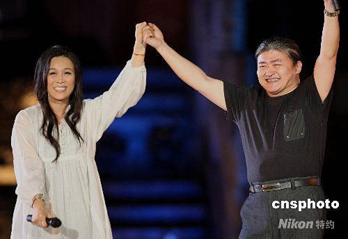 劉歡、那英攜手同唱北京奧運(yùn)歌曲。