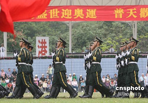 圖為市民在昂船洲軍營觀看槍械團體操表演。中新社發 武仲林 攝