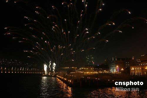 圖:澳門(mén)舉行煙花匯演慶祝奧運(yùn)火炬?zhèn)鬟f(2)