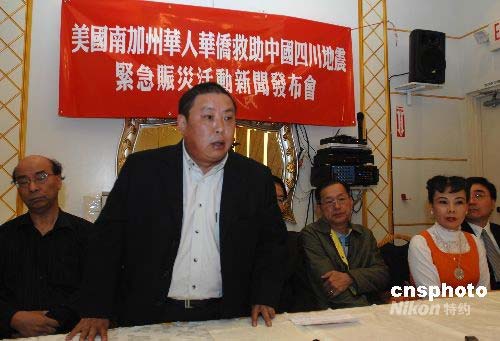 當(dāng)?shù)貢r(shí)間5月12日,美國(guó)南加州主要華人華僑團(tuán)體向僑界發(fā)出緊急賑災(zāi)倡議,呼吁華人華僑向四川汶川大地震災(zāi)區(qū)踴躍捐獻(xiàn)。中新社發(fā) 張煒 攝