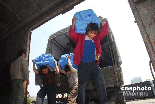 圖:安徽1.5萬頂帳篷緊急運(yùn)往四川災(zāi)區(qū)(2)