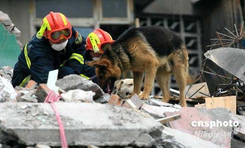 組圖:消防搜救隊(duì)和搜救犬緊張工作(8)