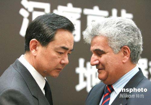 歐盟駐華大使塞日·安博前往吊唁時,與中國外交部副部長王毅握手致意,言辭悲切。中新社發 廖文靜 攝