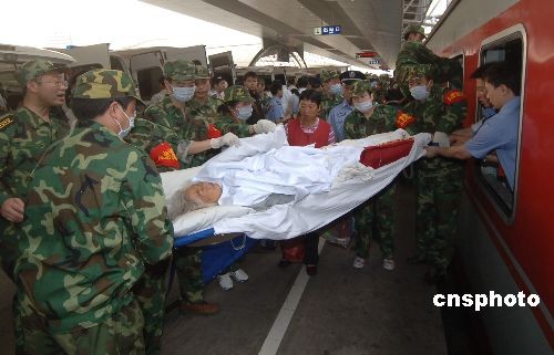 組圖:地震災區首趟運送傷員專列順利抵達重慶(4)