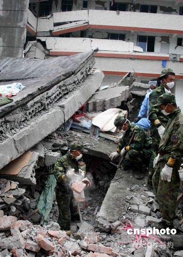 5月22日,鐵軍官兵繼續(xù)對汶川縣映秀鎮(zhèn)進(jìn)行拉網(wǎng)式搜尋。中新社發(fā) 曾憲平 攝