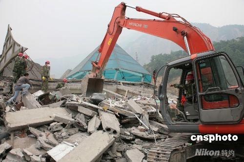 四川北川大型機械挖掘國家金庫庫款。中新社發(fā) 陳雙維 攝