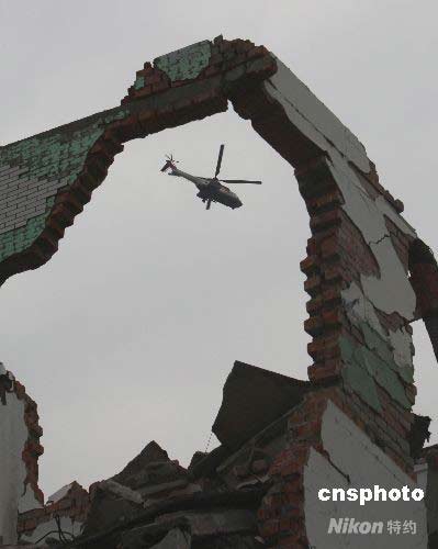 5月20日,中國空軍直升飛機頻繁出動進行空中救援。中新社發(fā) 趙振清 攝