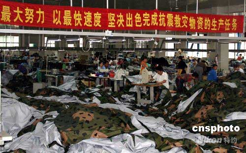 圖:野營(yíng)用品企業(yè)開足馬力生產(chǎn)救災(zāi)帳篷(2)