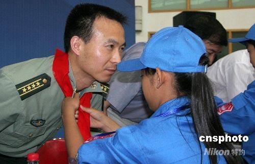 5月31日下午,由中國航天員中心《航天員》雜志主辦的第四屆中國航天員體驗營在北京航天城開營,“英雄航天員”費俊龍、聶海勝等出席開營儀式。中新社發 孫自法 攝