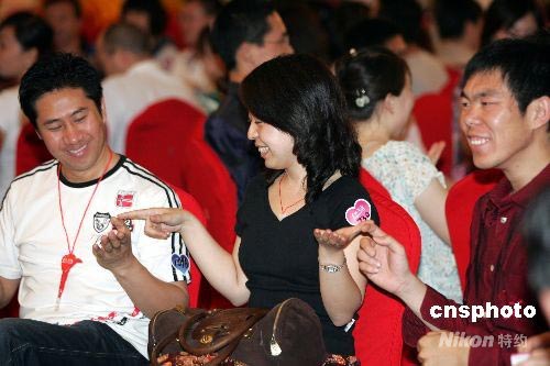 五百余名北京單身青年6月1日在某婚戀網站的組織下,參加一場主題為“找個老婆過家家”的相親派對,“歡度六一國際兒童節”。青年男女們在現場一起“丟手絹”、“抓人”、“跳房子”、“老鷹抓小雞”,一個個經典的童年游戲,讓現場的會員很快消除了陌生感。中新社發 楊可佳 攝