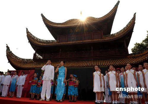 圖:湘人齊誦《岳陽樓記》送“祥云”