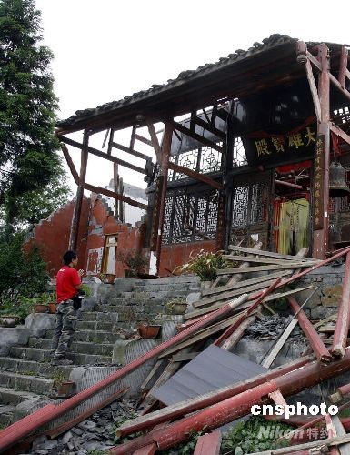 六月四日,一名香客在四川綿竹的云悟寺上香。位于四川綿竹的云悟寺,始建于明代嘉靖年間,目前的云悟寺為一九四三年重修,是巴蜀知名度很高的佛寺。此次大地震造成寺內主體建筑完全垮塌,損失慘重。中新社發 慎重 攝