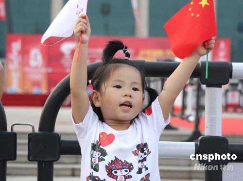 廣西南寧一位小朋友在民族廣場為即將到來的奧運火炬歡呼。中新社發(fā) 劉萬強 攝