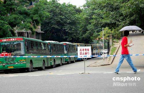 重慶市北碚區(qū)西師附屬中學外拉起了“禁止車輛通行”的警戒線,全力保證高考期間考場周圍的安靜狀態(tài),讓考生考出最佳成績。中新社發(fā) 許康平 攝