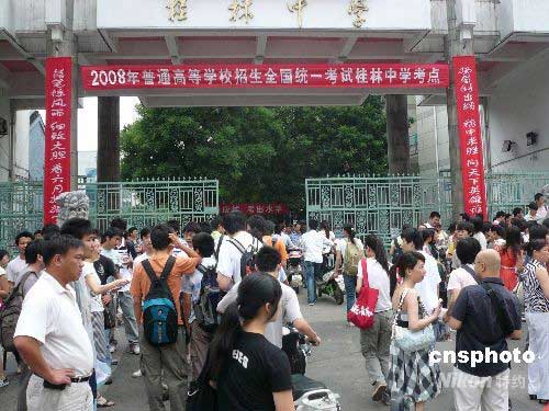 全國高考第一天,桂林中學高考點。2008年廣西高考報名人數30萬3778人,首次突破30萬人,比2007年增長3.20%。中新社發 周利朔 攝