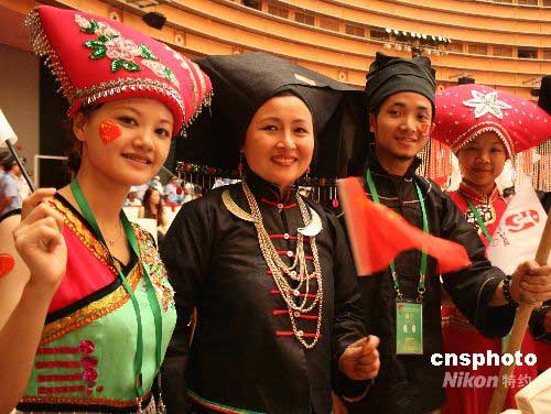壯鄉(xiāng)民眾穿上盛裝喜迎圣火。中新社發(fā) 林艷華 攝