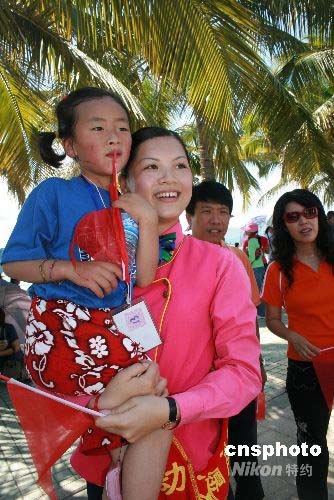 七歲的“小草”喜歡上了跟車服務的愛心姐姐。中新社發 關向東 攝