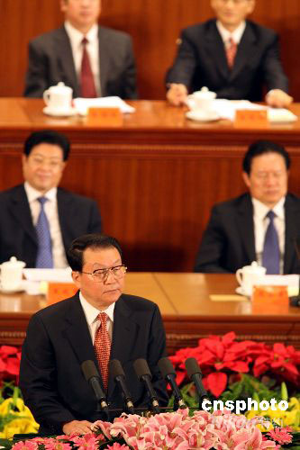 6月10日,共青團第十六次全國代表大會在北京人民大會堂舉行開幕式。黨和國家領導人胡錦濤等出席,李長春代表黨中央祝詞。中新社發 任海霞 攝
