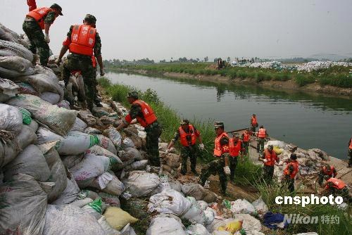 圖:四川遂寧緊急筑壩截流保衛飲用水源(2)