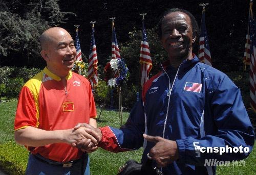當(dāng)?shù)貢r間六月十日,三十七年前中美“乒乓外交”的兩位對手——原中國乒乓國手梁戈亮和美國乒乓球選手喬治·布雷斯威特在美國加州尼克松圖書館重逢。喬治說,當(dāng)年他兩次輸給了梁戈亮,梁戈亮笑稱大家都贏了,贏得了友誼。尼克松圖書館將于十二日舉辦乒乓球友誼賽,重溫三十七年前中美“乒乓外交”的歷史性一幕,屆時代表中國老、中、青乒乓球國手的梁戈亮、喬云萍、張雷和宋時超將與美國乒乓球選手進(jìn)行友誼賽。中新社發(fā) 張煒 攝