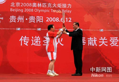 圖:歐陽自遠從貴州省委書記石宗源手中接過火炬