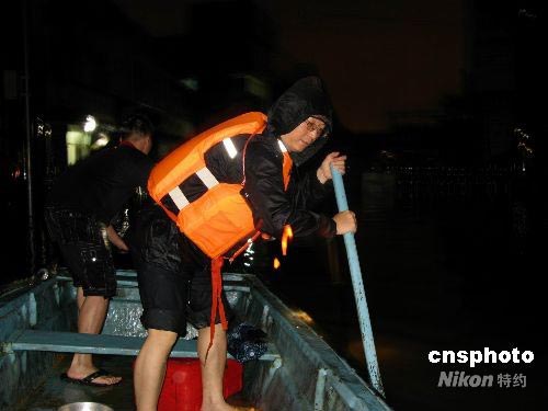 圖為13日凌晨柳南區河西街道辦事處應急分隊的民兵開展救災工作。中新社發 周瀟男 攝