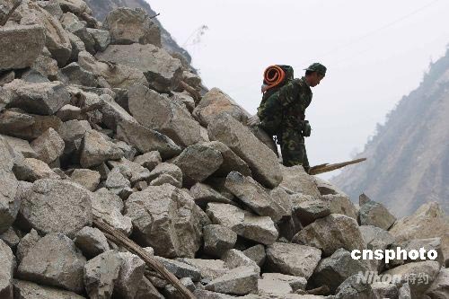 增援官兵趕赴失事直升機警民遺體營地。中新社發 賈國榮 攝