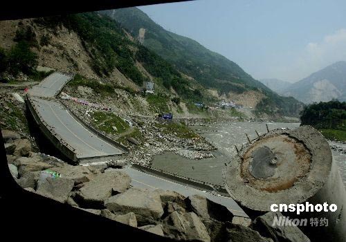 四川汶川大地震嚴重毀壞映秀鎮(zhèn)的道路,修復(fù)工程非常艱巨。隨著搜尋失事直升機任務(wù)的完成,各路大軍上萬人六月中旬再度沿江開進這里,準備清理防疫和重建工作。中新社發(fā) 賈國榮 攝