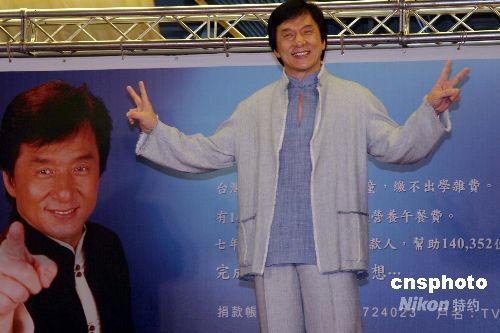 時隔四年之久,知名藝人成龍六月十八日再度造訪臺灣。身為臺灣女婿的他表示,“近鄉情怯,此行是專程為臺灣貧苦孩子募款而來”。中新社發 許曉青 攝