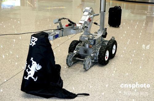 圖:北京海關奧運防爆演習利用機器人排險