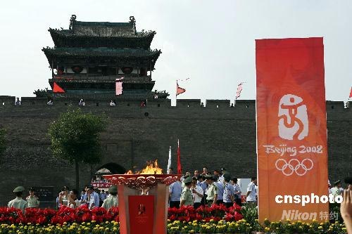 6月25日,奧運火炬在山西平遙古城順利傳遞。整個傳遞過程中的唯一一次古城墻之旅,充分展現(xiàn)了平遙深邃的歷史特色。中新社發(fā) 張云 攝