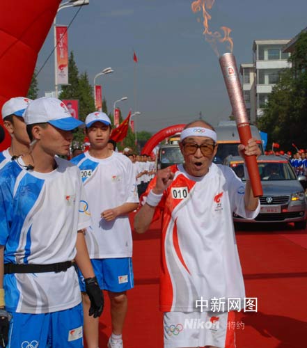 現年九十一歲的李智老先生是年齡最大的一位火炬手,他曾兩次與自行車隊友從大同出發到北京聲援奧運,倡導全民健身。張雷杰攝