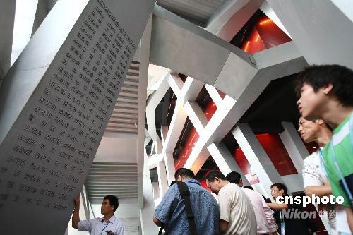 6月28日,北京奧運(yùn)會(huì)主體育場(chǎng)——國(guó)家體育場(chǎng)(“鳥(niǎo)巢”)正式落成,建設(shè)者的名字被刻在國(guó)家體育場(chǎng)落成紀(jì)念柱的背面。中新社發(fā) 盛佳鵬 攝