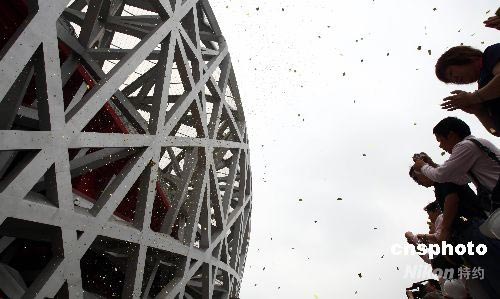 6月28日,2008年北京奧運會主體育場國家體育場(“鳥巢”)落成典禮在北京舉行。國家體育場“鳥巢”系第29屆夏季奧運會主體育場,位于奧林匹克公園內,占地21.4公頃,建筑面積25.8萬平方米,南北長333米,東西寬298米,高68米,賽時坐席9.1萬個,是目前世界上跨度最大的鋼結構體育建筑之一。中新社發 盛佳鵬 攝