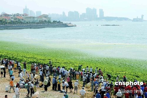 奧帆賽舉辦地青島動員各界清理近海滸苔(2)