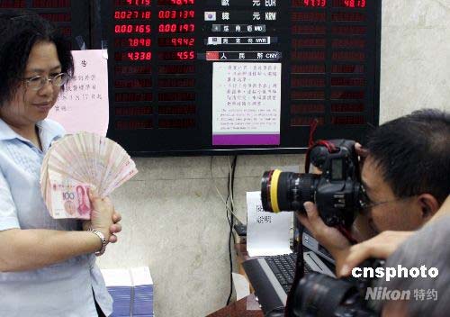 6月30日,人民幣開(kāi)始在臺(tái)灣十三家銀行的多家分行正式接受雙向兌換,上限為2萬(wàn)元人民幣。臺(tái)灣各家銀行共準(zhǔn)備了數(shù)億元人民幣,臺(tái)灣民眾參與踴躍,僅臺(tái)灣銀行30日全天就買(mǎi)入近200萬(wàn)元,賣(mài)出逾600萬(wàn)元人民幣。中新社發(fā) 黃少華 攝