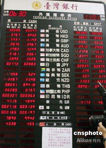 臺灣銀行30日排出人民幣對新臺幣買入一比四點三三八,賣出一比四點五五的匯價,全天就買入近200萬元,賣出逾600萬元人民幣。該行人員表示,人民幣屬強勢貨幣,許多臺灣民眾惜售、爭購以保值。中新社發 黃少華 攝