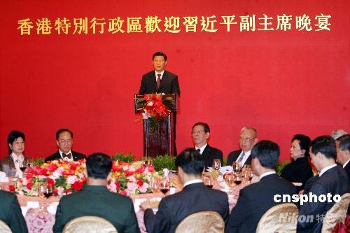 七月七日晚,中國國家副主席習近平出席香港特區(qū)政府歡迎晚宴,并發(fā)表講話。中新社發(fā) 武仲林 攝