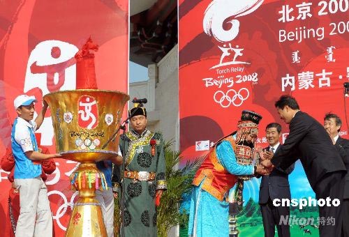 圖:鄂爾多斯民眾向北京奧組委贈送圣燈