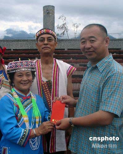 圖:大陸首發團向臺灣少數民族同胞贈紅包