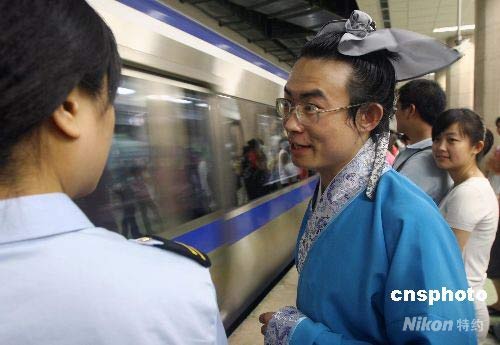 圖:“漢服”男子乘坐地鐵吸引路人目光(2)