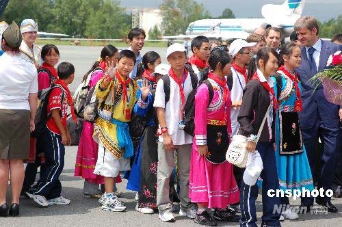 圖:中國地震災區兒童抵俄療養受到歡迎(2)