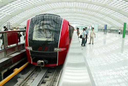 圖:北京地鐵機場專線駛?cè)胧锥紮C場T3航站樓