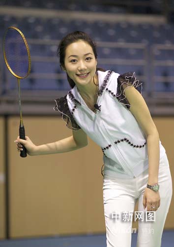 圖:影視紅星韓雪奧運羽毛球館激情揮拍